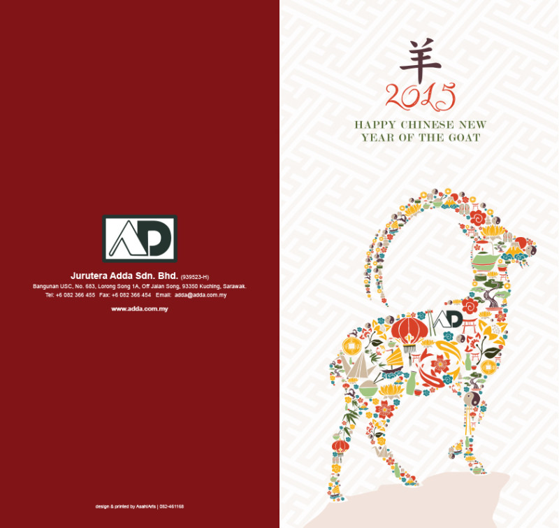 祝大家羊年,做人羊眉吐气, 生意羊羊得意,前程羊关大道, 烦恼羊长而去。 羊年发羊财,天天喜气羊羊! In this year of the goat, may you be proud and exalted in life, revel in your business success, have a smooth career path, and be free from worries. May you become rich, and be happy every day!